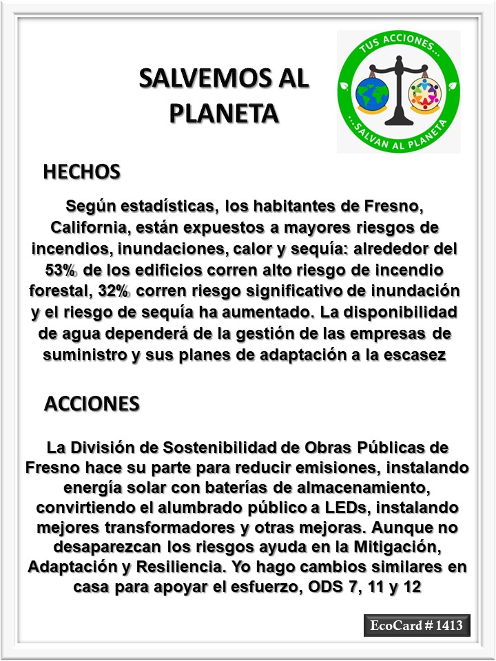 EcoCard #1413 Riesgos significativos José Antonio Cárdenas Marroquín Uncategorized September 10, 2024September 10, 2024 1 Minute Lydia P. Vignau y José A. Cárdenas Más información: Climate Change Hazard Ratings for Fresno, CA Más información: City of Fresno: SustainabilityShare this: Share on X (Opens in new window) X Share on Facebook (Opens in new window) Facebook Like Loading... Published September 10, 2024September 10, 2024