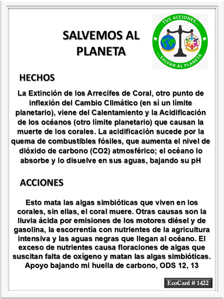EcoCard #1422 Arrecifes de coral José Antonio Cárdenas Marroquín Uncategorized September 18, 2024 1 Minute Lydia P. Vignau y José A. Cárdenas Más información: Understanding the Science of Ocean and Coastal Acidification Más información: What are the climate tipping points? Share this: Click to share on X (Opens in new window) X Click to share on Facebook (Opens in new window) Facebook Like Loading... Published September 18, 2024