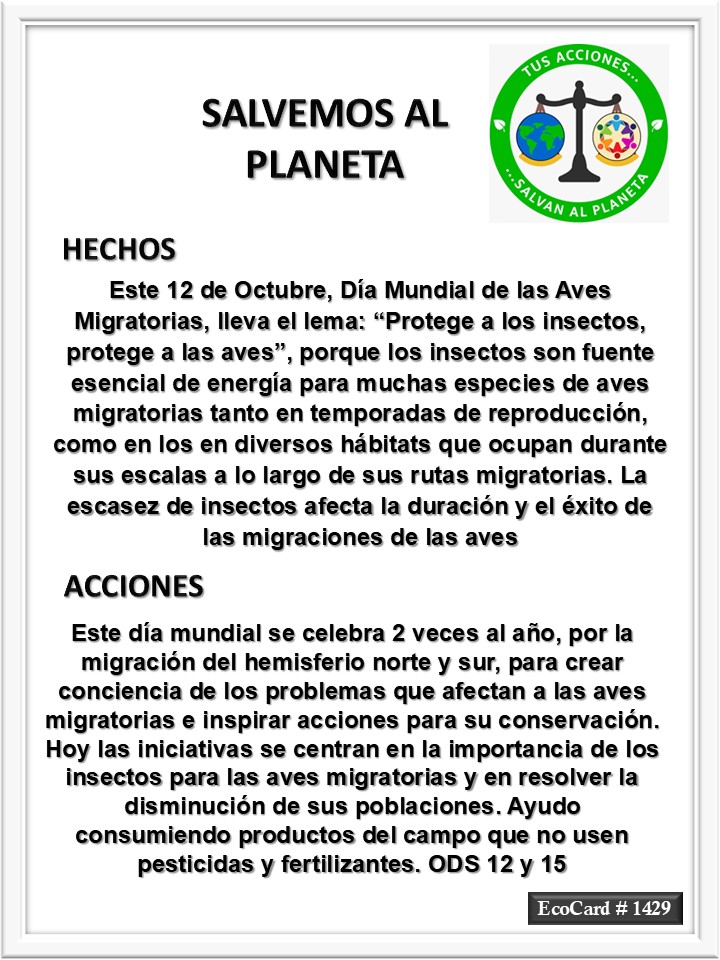 EcoCard #1429 Protege a los insectos, protege a las aves José Antonio Cárdenas Marroquín Uncategorized October 12, 2024 1 Minute Lydia P. Vignau y José A. Cárdenas Más información: Protect Insects, Protect Birds Share this: Share on X (Opens in new window) X Share on Facebook (Opens in new window) Facebook Like Loading... Published October 12, 2024
