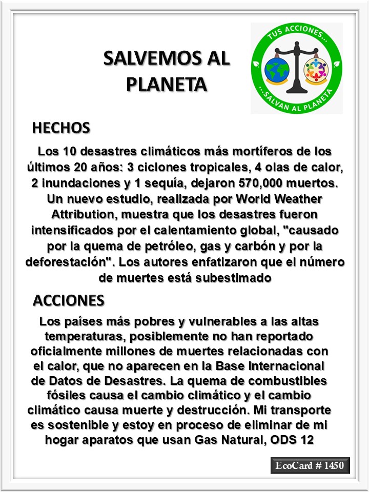 EcoCard #1450 Muerte y destrucción José Antonio Cárdenas Marroquín Uncategorized November 2, 2024 1 Minute Lydia P. Vignau y José A. Cárdenas Más información: New Report Shows How Human-Caused Warming Intensified the 10 Deadliest Climate Disasters Since 2004 Share this: Share on X (Opens in new window) X Share on Facebook (Opens in new window) Facebook Like Loading... Published November 2, 2024