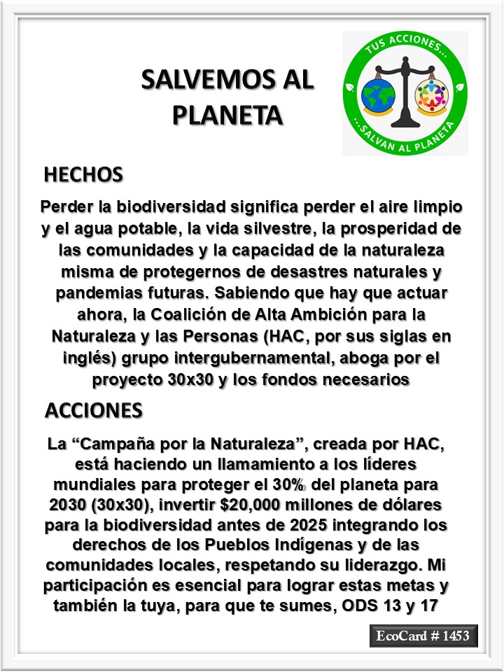 EcoCard #1453 Campaña por la naturaleza José Antonio Cárdenas Marroquín Uncategorized November 6, 2024 1 Minute Lydia P. Vignau y José A. Cárdenas Más información: Campaign for Nature Share this: Share on X (Opens in new window) X Share on Facebook (Opens in new window) Facebook Like Loading... Published November 6, 2024