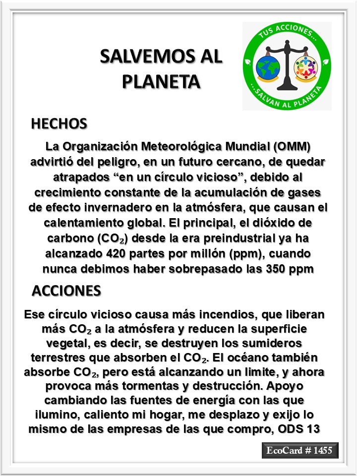 EcoCard #1455 Un círculo vicioso José Antonio Cárdenas Marroquín Uncategorized November 8, 2024 1 Minute Lydia P. Vignau y José A. Cárdenas Más información: La Organización Meteorológica Mundial advierte del peligro de quedar atrapados en el “círculo vicioso” del calentamiento Share this: Share on X (Opens in new window) X Share on Facebook (Opens in new window) Facebook Like Loading... Published November 8, 2024