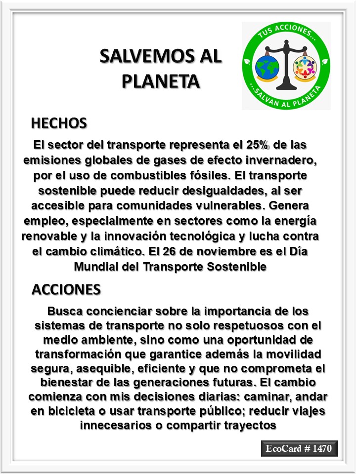 EcoCard #1470 Transporte sostenible José Antonio Cárdenas Marroquín Uncategorized November 26, 2024November 26, 2024 1 Minute Lydia P. Vignau y José A. Cárdenas Más información: Día Mundial del Transporte Sostenible Share this: Share on X (Opens in new window) X Share on Facebook (Opens in new window) Facebook Like Loading... Published November 26, 2024November 26, 2024