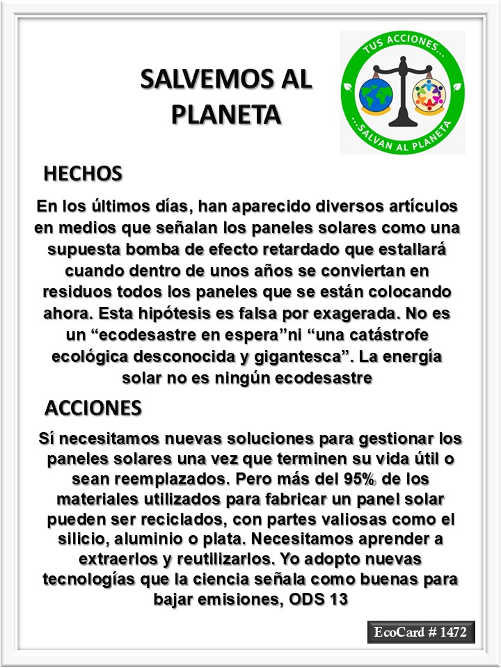 EcoCard #1472 Paneles solares José Antonio Cárdenas Marroquín Uncategorized November 28, 2024 1 Minute Lydia P. Vignau y José A. Cárdenas Más información: Detector de bulos ambientalesShare this: Click to share on X (Opens in new window) X Click to share on Facebook (Opens in new window) Facebook Like Loading... Published November 28, 2024