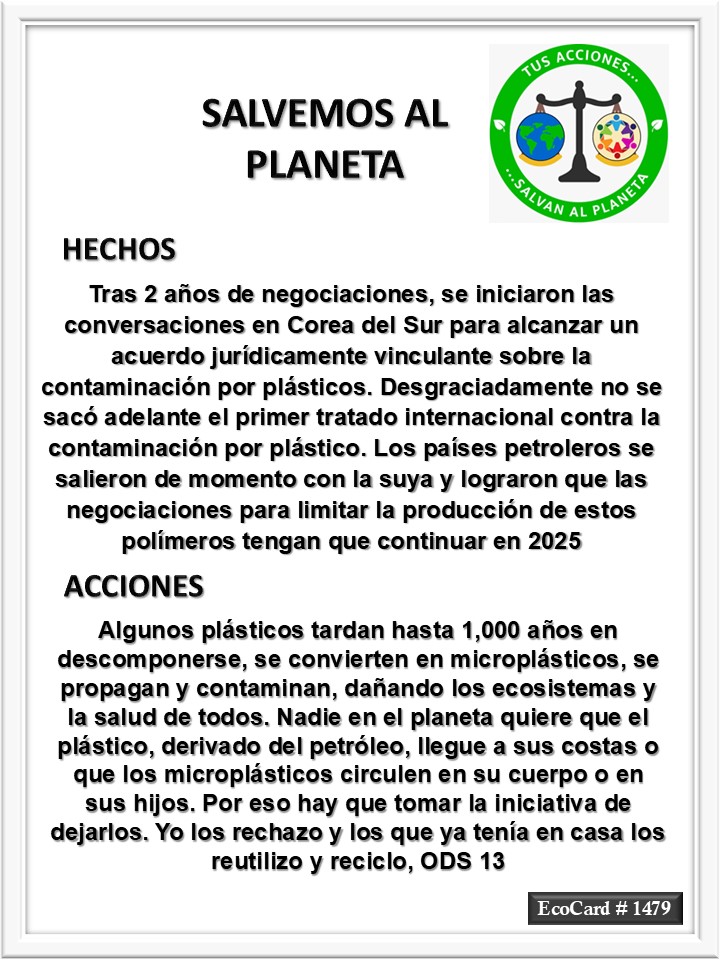 EcoCard #1479 Contaminación por plásticos José Antonio Cárdenas Marroquín Uncategorized December 5, 2024 1 Minute Lydia P. Vignau y José A. Cárdenas Más información: De la gasolina al plástico- la estrategia de negocio de las petroleras que bloquea tratados medioambientalesShare this: Click to share on X (Opens in new window) X Click to share on Facebook (Opens in new window) Facebook Like Loading... Published December 5, 2024