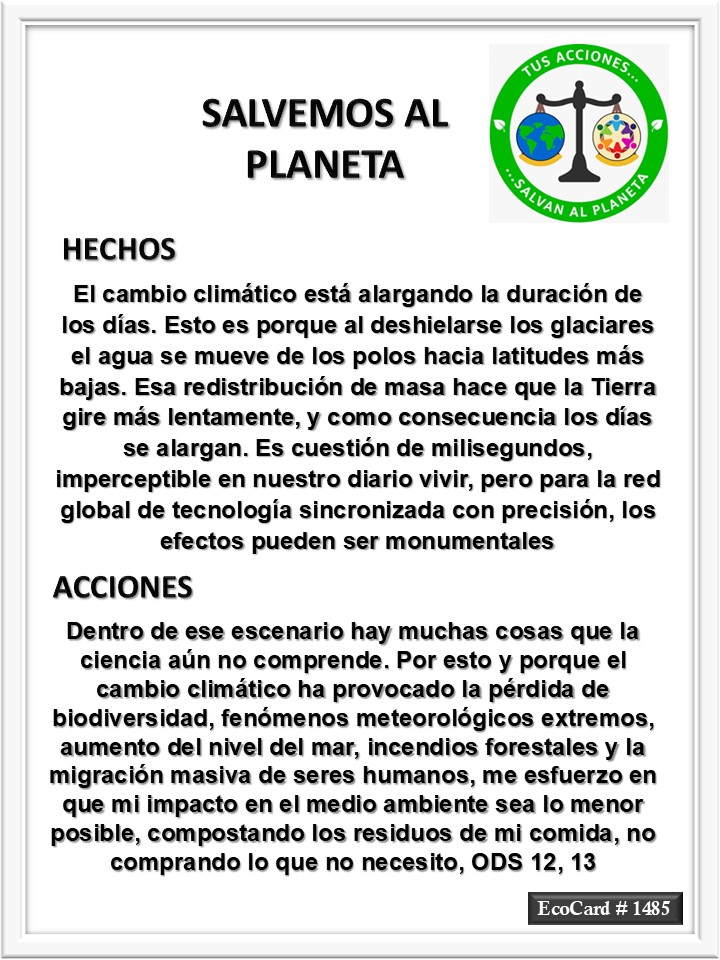 EcoCard #1485 La duración de los días José Antonio Cárdenas Marroquín Uncategorized December 11, 2024 1 Minute Lydia P. Vignau y José A. Cárdenas Más información: Climate change will soon make Earth’s days longer. Here’s what that means for the planetShare this: Share on X (Opens in new window) X Share on Facebook (Opens in new window) Facebook Like Loading... Published December 11, 2024
