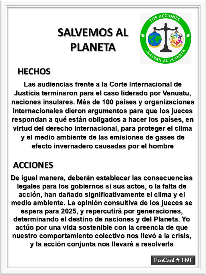 EcoCard #1491 Proteger al Planeta José Antonio Cárdenas Marroquín Uncategorized December 17, 2024December 17, 2024 1 Minute Lydia P. Vignau y José A. Cárdenas Más información: CJ weighs legal responsibility for climate change, ‘future of our planet’Share this: Share on X (Opens in new window) X Share on Facebook (Opens in new window) Facebook Like Loading... Published December 17, 2024December 17, 2024