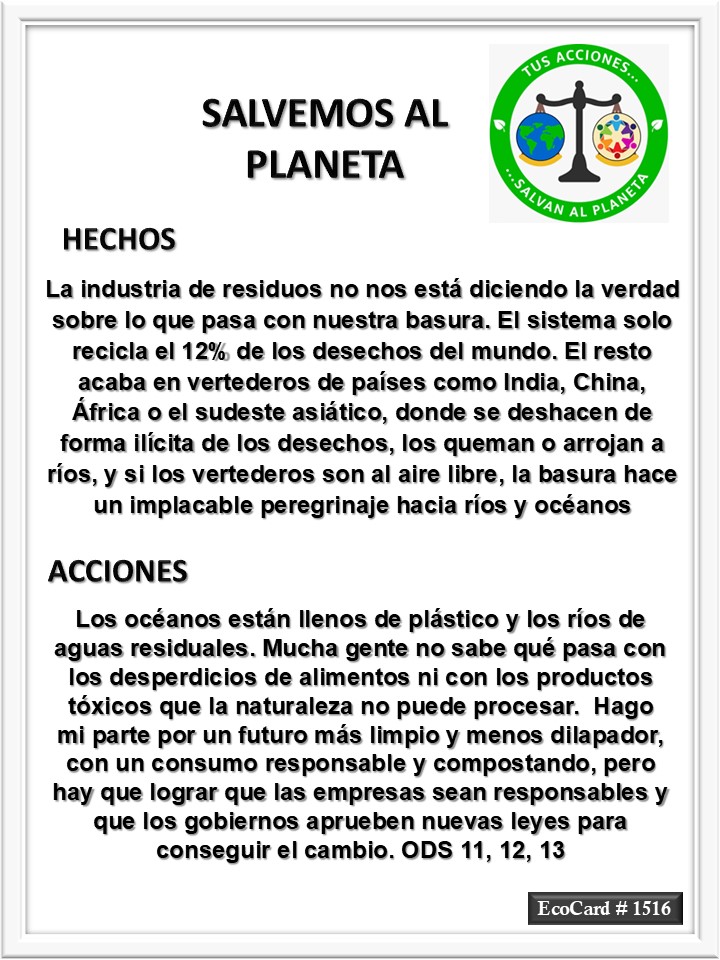 EcoCard #1516 La industria de los residuos José Antonio Cárdenas Marroquín Uncategorized January 16, 2025January 16, 2025 1 Minute Lydia P. Vignau y José A. Cárdenas Más información: Oliver Franklin-Wallis, periodista: “Se habla mucho de reciclar, pero tiramos la mitad de nuestra basura en países del sur”Share this: Click to share on X (Opens in new window) X Click to share on Facebook (Opens in new window) Facebook Like Loading... Published January 16, 2025January 16, 2025