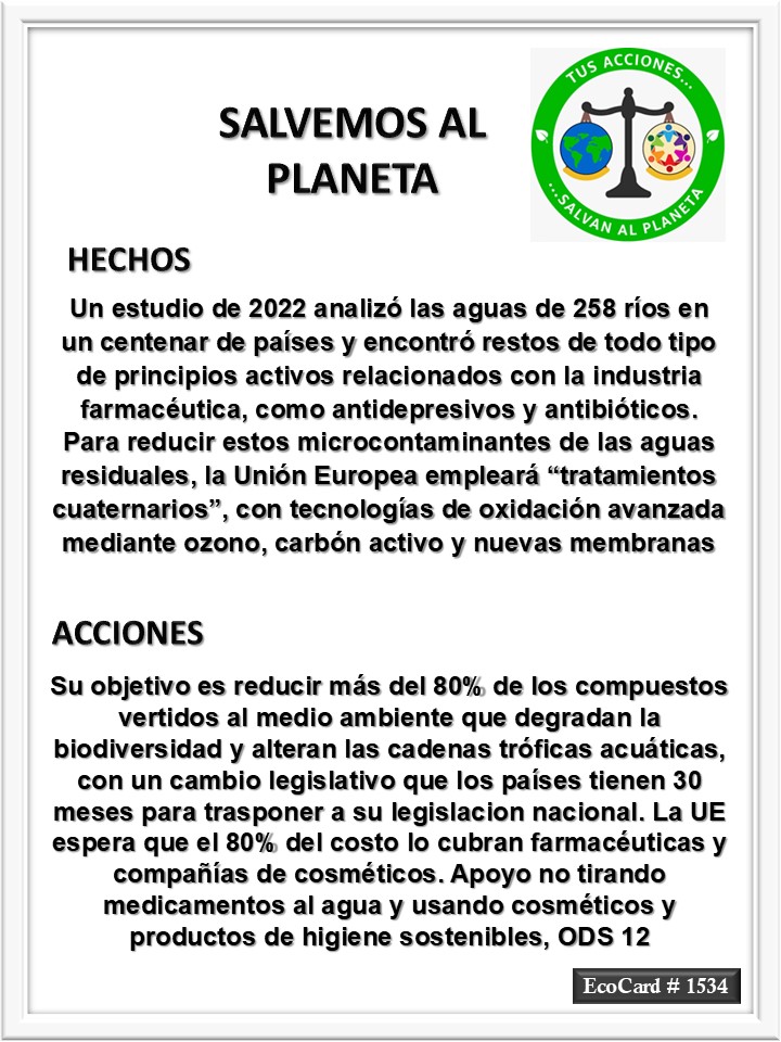EcoCard #1534 La industria farmacéutica José Antonio Cárdenas Marroquín Uncategorized February 1, 2025February 2, 2025 1 Minute Lydia P. Vignau y José A. Cárdenas Más información: La UE obliga a las farmacéuticas a asumir la millonaria factura de limpiar los ríos de restos de medicamentos Share this: Click to share on X (Opens in new window) X Click to share on Facebook (Opens in new window) Facebook Like Loading... Published February 1, 2025February 2, 2025