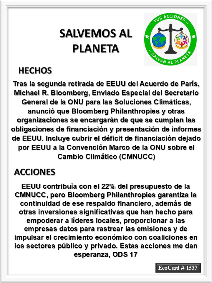 EcoCard #1537 Continuidad del respaldo financiero José Antonio Cárdenas Marroquín Uncategorized February 4, 2025 1 Minute Lydia P. Vignau y José A. Cárdenas Más información: UN Special Envoy Michael R. Bloomberg Announces Effort to Ensure U.S. Honours Paris Agreement Share this: Share on X (Opens in new window) X Share on Facebook (Opens in new window) Facebook Like Loading... Published February 4, 2025