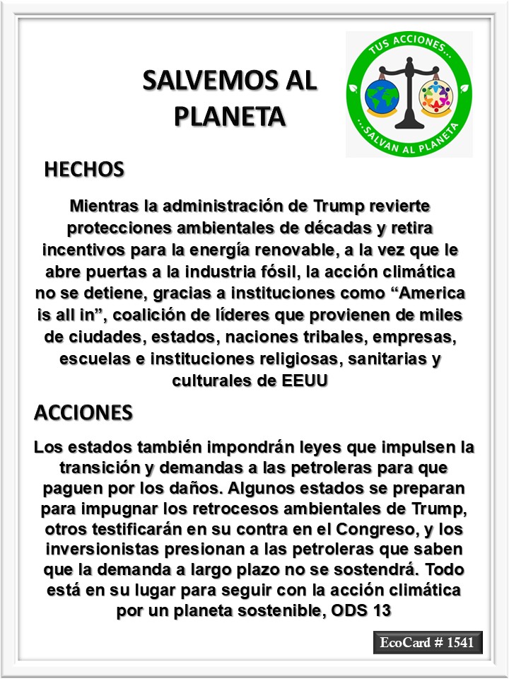 EcoCard #1541 Coalición de líderes José Antonio Cárdenas Marroquín Uncategorized February 10, 2025 1 Minute Lydia P. Vignau y José A. Cárdenas Más información: How US states are leading the climate fight – despite Trump’s rollbacks Más información: Investors might prevent fossil fuel expansion Share this: Share on X (Opens in new window) X Share on Facebook (Opens in new window) Facebook Like Loading... Published February 10, 2025