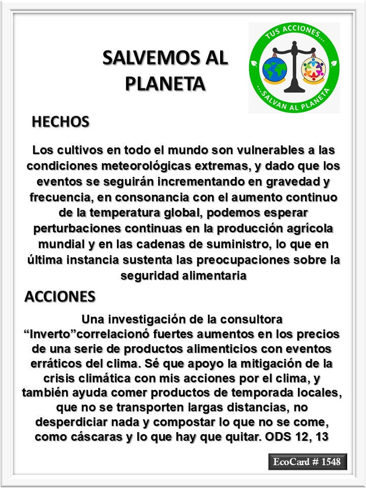 EcoCard #1548 Los cultivos del mundo José Antonio Cárdenas Marroquín Uncategorized February 17, 2025February 17, 2025 1 Minute Lydia P. Vignau y José A. Cárdenas Más información: Extreme weather expected to cause food price volatility in 2025 after cost of cocoa and coffee doubles Share this: Share on X (Opens in new window) X Share on Facebook (Opens in new window) Facebook Like Loading... Published February 17, 2025February 17, 2025