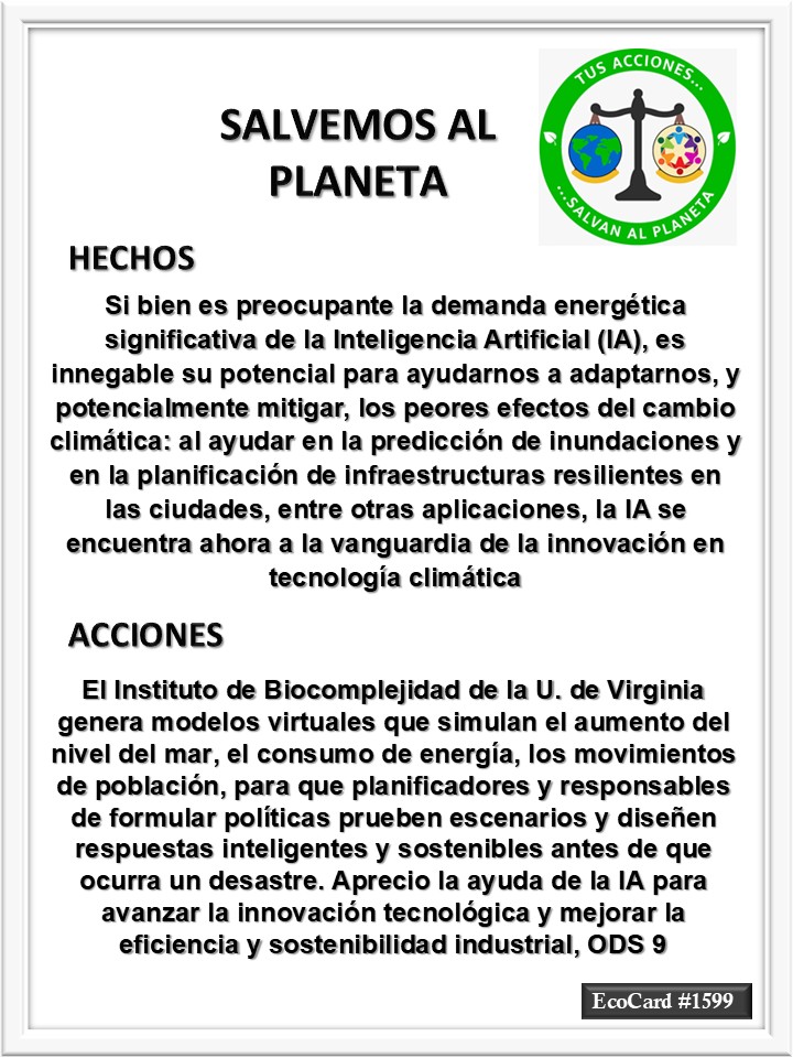 EcoCard #1599 Respuestas inteligentes José Antonio Cárdenas Marroquín Uncategorized April 11, 2025 1 Minute Lydia P. Vignau y José A. Cárdenas Más información: How AI Is Transforming Climate Change Prediction And Mitigation Share this: Share on X (Opens in new window) X Share on Facebook (Opens in new window) Facebook Like Loading... Published April 11, 2025