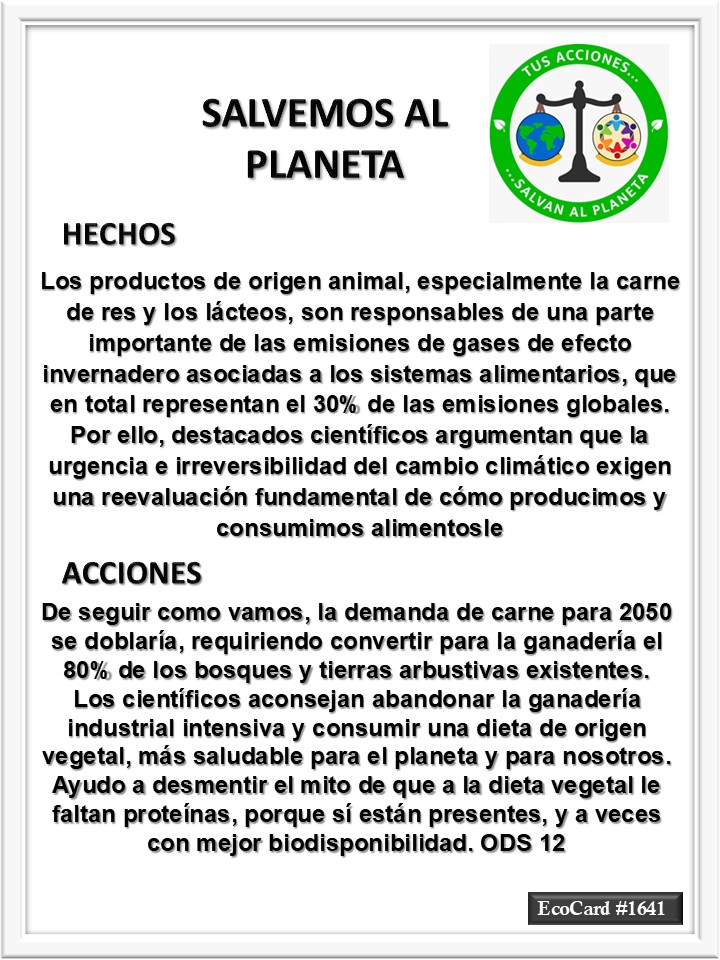 EcoCard #1641 Dieta de origen vegetal José Antonio Cárdenas Marroquín Uncategorized May 25, 2025 1 Minute Lydia P. Vignau y José A. Cárdenas Más información: Continued Demand for Meat & Dairy Will Devastate the Planet, Scientists Warn Más información: 12 Best Green Resolutions for Every Month in 2025: A Guide to Sustainable Living Share this: Click to share on X (Opens in new window) X Click to share on Facebook (Opens in new window) Facebook Like Loading... Published May 25, 2025