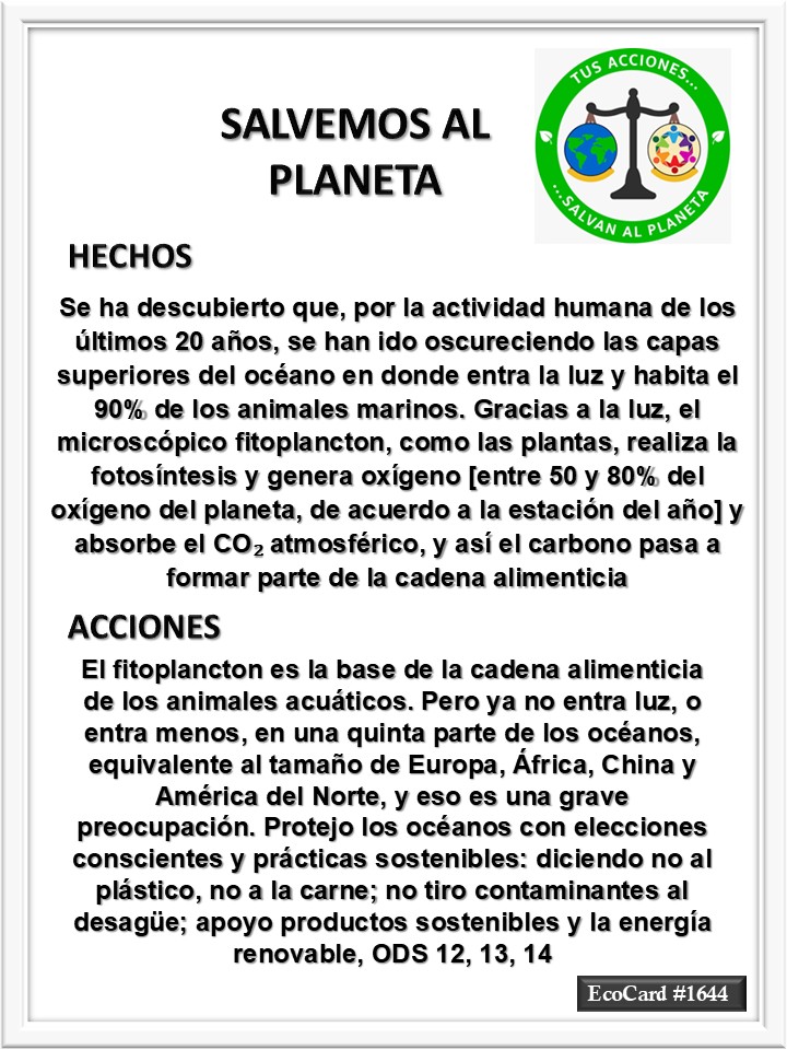 EcoCard #1644 Ya no entra luz José Antonio Cárdenas Marroquín Uncategorized May 28, 2025 1 Minute Lydia P. Vignau y José A. Cárdenas Más información: Planet’s darkening oceans pose threat to marine life, scientists say Más información: ¿Qué es el fitoplancton? Share this: Share on X (Opens in new window) X Share on Facebook (Opens in new window) Facebook Like Loading... Published May 28, 2025