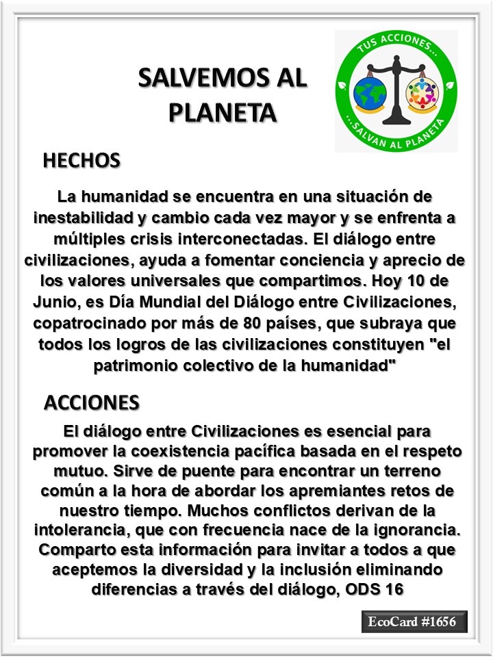 EcoCard #1656 Diálogo entre civilizaciones José Antonio Cárdenas Marroquín Uncategorized June 10, 2025 1 Minute Lydia P. Vignau y José A. Cárdenas Más información: International Day for Dialogue among Civilizations – 10 June Share this: Share on X (Opens in new window) X Share on Facebook (Opens in new window) Facebook Like Loading... Published June 10, 2025