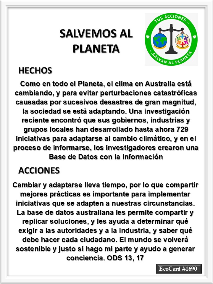 EcoCard #1690 Cambiar y adaptarse José Antonio Cárdenas Marroquín Uncategorized July 23, 2025 1 Minute Lydia P. Vignau y José A. Cárdenas Más información: How are Australians adapting to climate change? Here are 729 ways Share this: Click to share on X (Opens in new window) X Click to share on Facebook (Opens in new window) Facebook Like Loading... Published July 23, 2025