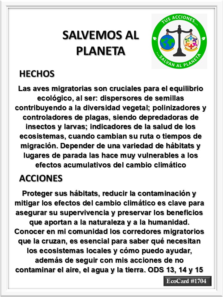 EcoCard #1704 Aves migratorias José Antonio Cárdenas Marroquín Uncategorized August 6, 2025 1 Minute Lydia P. Vignau y José A. Cárdenas Más información: State of the World’s Migratory Species Share this: Click to share on X (Opens in new window) X Click to share on Facebook (Opens in new window) Facebook Like Loading... Published August 6, 2025