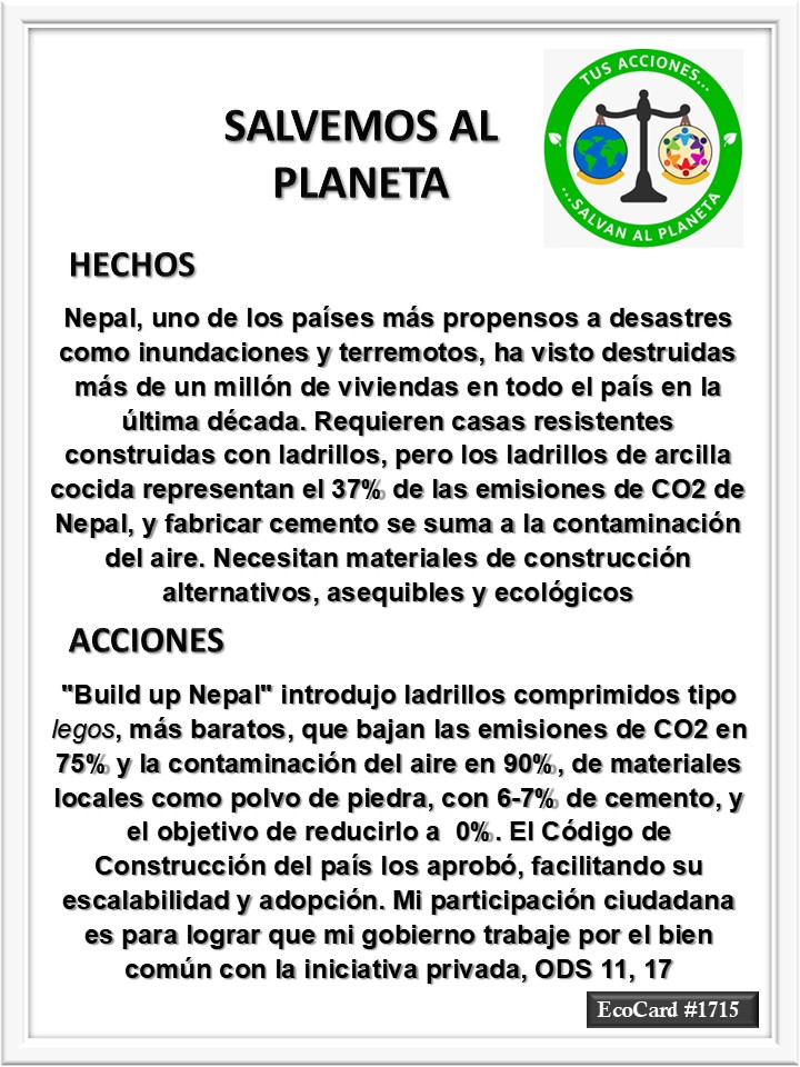 EcoCard #1715 El bien común José Antonio Cárdenas Marroquín Uncategorized August 20, 2025 1 Minute Lydia P. Vignau y José A. Cárdenas Más información: Climate-friendly homes and resilientlivelihoods, for people and planet. Más información: Build up Nepal Share this: Share on X (Opens in new window) X Share on Facebook (Opens in new window) Facebook Like Loading... Published August 20, 2025