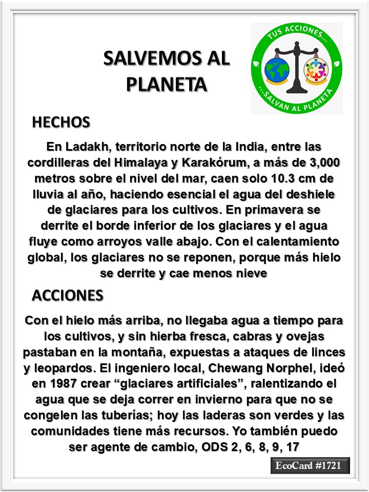 EcoCard #1721 Glaciares artificiales José Antonio Cárdenas Marroquín Uncategorized August 26, 2025 1 Minute Lydia P. Vignau y José A. Cárdenas Más información: Chewang Norphel, the Iceman of Ladakh Share this: Click to share on X (Opens in new window) X Click to share on Facebook (Opens in new window) Facebook Like Loading... Published August 26, 2025