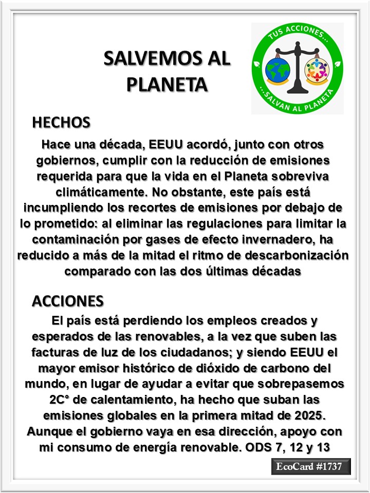 EcoCard #1737 El mayor emisor José Antonio Cárdenas Marroquín Uncategorized September 11, 2025 1 Minute Lydia P. Vignau y José A. Cárdenas Más información: Jump in US greenhouse gas pollution pushed global emissions higher Share this: Share on X (Opens in new window) X Share on Facebook (Opens in new window) Facebook Like Loading... Published September 11, 2025
