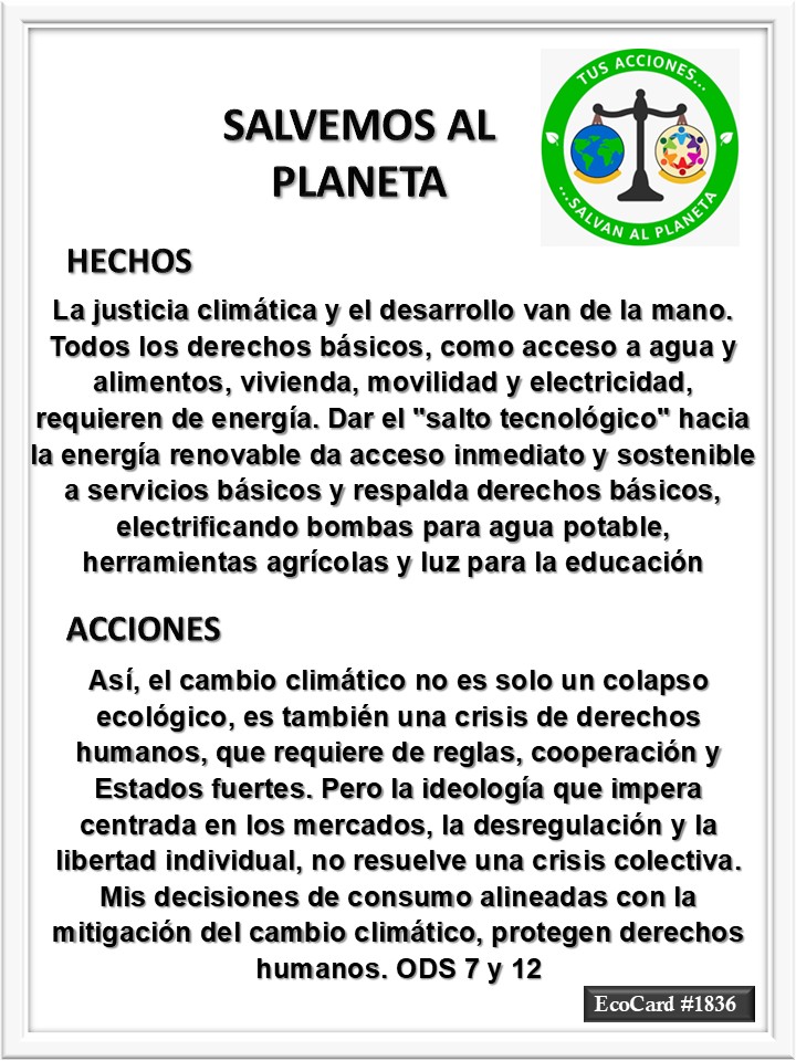 EcoCard #1836 Derechos humanos José Antonio Cárdenas Marroquín Uncategorized December 30, 2025 1 Minute Lydia P. Vignau y José A. Cárdenas Más información: How climate change is threatening human rights Share this: Click to share on X (Opens in new window) X Click to share on Facebook (Opens in new window) Facebook Like Loading... Published December 30, 2025