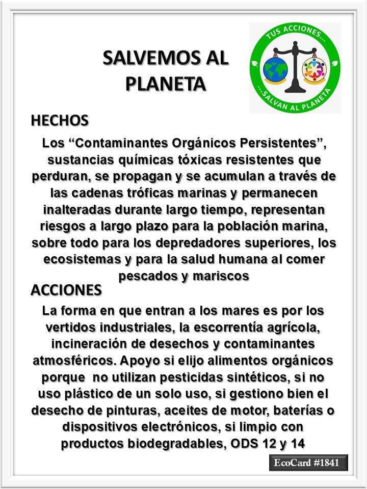 EcoCard #1841 La población marina José Antonio Cárdenas Marroquín Uncategorized January 5, 2026 1 Minute Lydia P. Vignau y José A. Cárdenas Más información: The Role of Persistent Organic Pollutants in Ocean Food Chains: Long-Term Ecological Consequences Share this: Click to share on X (Opens in new window) X Click to share on Facebook (Opens in new window) Facebook Like Loading... Published January 5, 2026