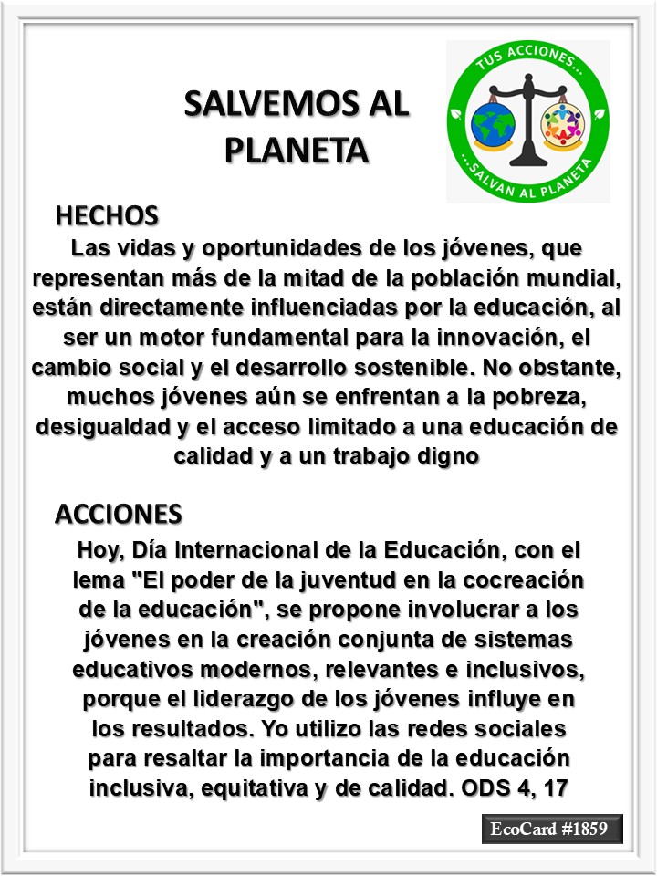 EcoCard #1859 Los jóvenes José Antonio Cárdenas Marroquín Uncategorized January 24, 2026January 24, 2026 1 Minute Lydia P. Vignau y José A. Cárdenas Más información: International Day of Education – 24 January Share this: Share on X (Opens in new window) X Share on Facebook (Opens in new window) Facebook Like Loading... Published January 24, 2026January 24, 2026