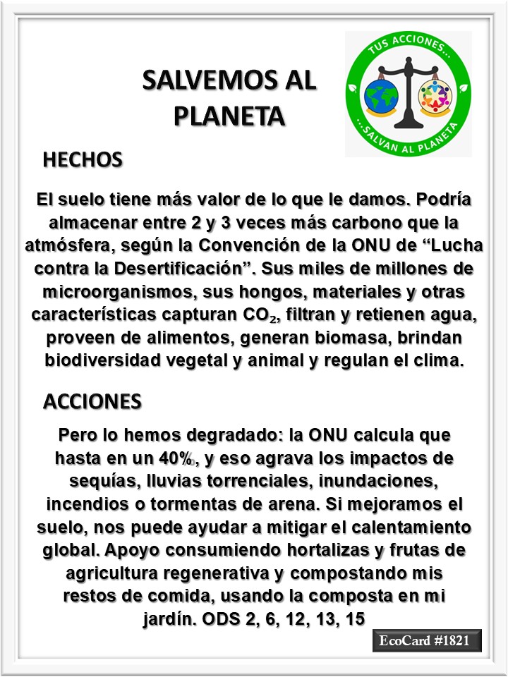 EcoCard #1821 El suelo y el clima Lydia P. Vignau y José A. Cárdenas Más información: El suelo, el gran desconocido salvavidas del clima