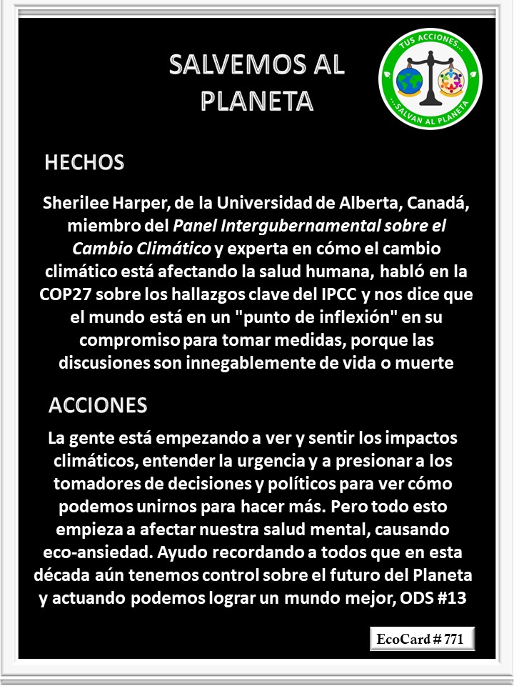 EcoCard # 771 Eco-ansiedad Lydia P. Vignau y José A. Cárdenas Más información: World at a tipping point