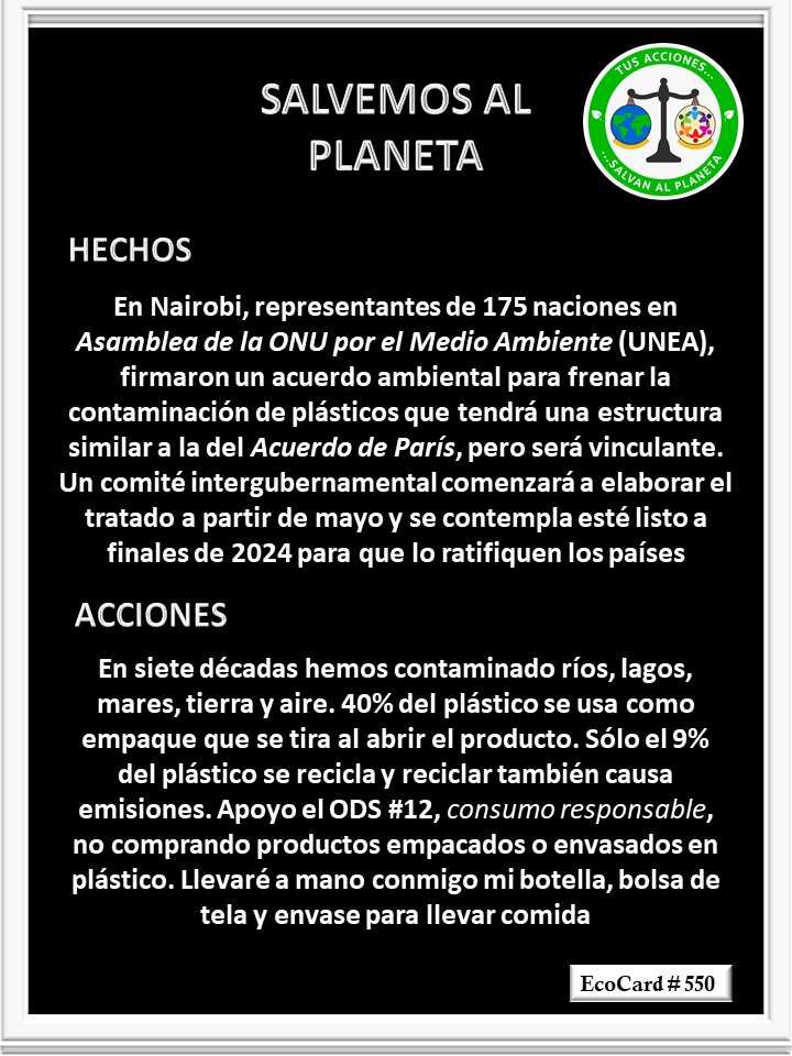 EcoCard # 550 Contaminación de plásticos Lydia P. Vignau y José A. Cárdenas Más Información: Plastic waste crisis