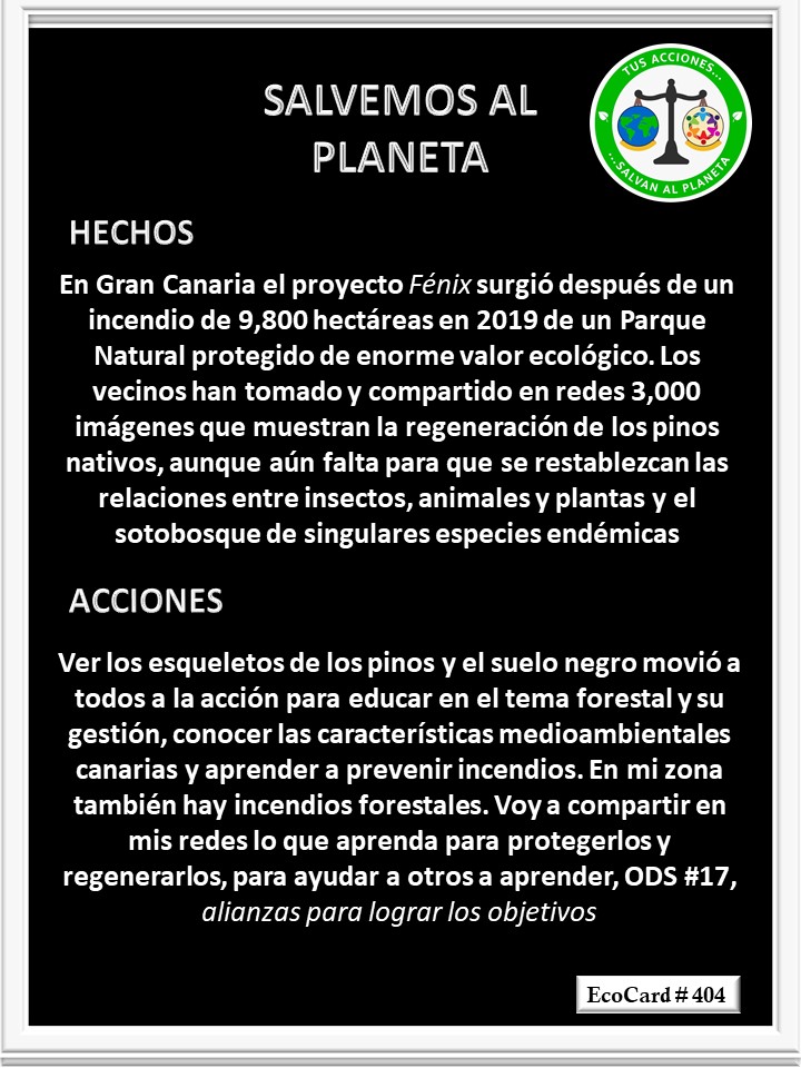 EcoCard # 404 Renacer de un bosque Lydia P. Vignau y José A. Cárdenas Más Información: El renacer de un bosque canario Más Información: Proyecto Fénix