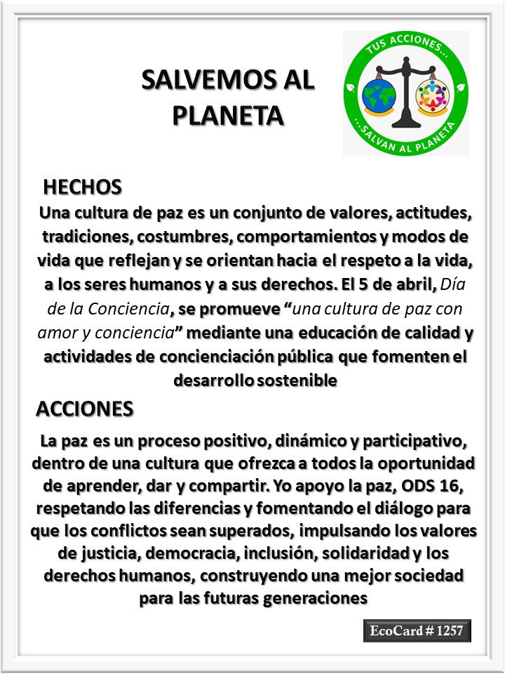 EcoCard #1257 Paz con amor y conciencia Lydia P. Vignau y José A. Cárdenas Más información: International Day of Conscience